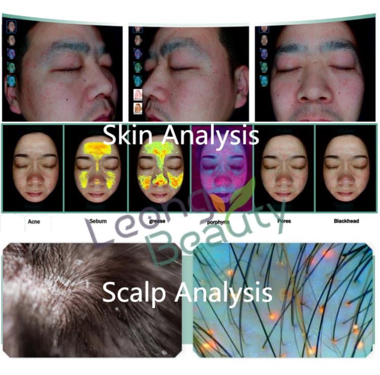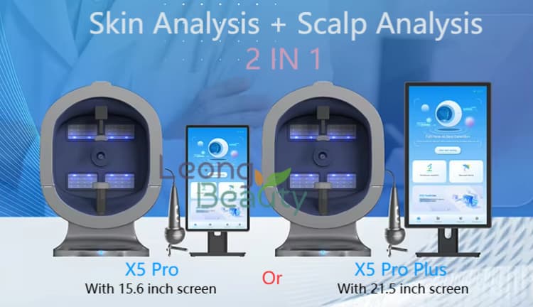 The 2-in-1 Skin and Scalp Analysis Machine X5 Pro is the first machine to combine skin and scalp analysis. It can detect and analyze over 24 skin parameters, as well as scalp and pore conditions, providing a scientific basis for skin rejuvenation, scalp care, and hair loss treatment. Additionally, the 2-in-1 Skin and Scalp Analysis Machine X5 Pro offers special weight and skin health management, sleep and skin health management.