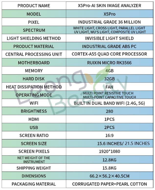 3.Product Parameter (Specification) of the 2-in-1 Skin and Scalp Analysis Machine X5 Pro